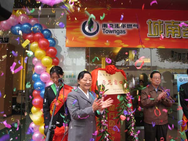 11月10日上午,南京港华燃气有限公司在位于莫愁湖公园对面的城南服务中心门口,举行了城南客服中心荣获市首批“行风建设示范窗口”揭牌仪式。参加揭牌仪式的有市市政公用局党委书记陈秀芳、南京市行风评议代表及市政公用局、市城建集团、市燃气管理处等相关部门的领导。揭牌仪式上,陈秀芳书记发表讲话,希望全行业以示范窗口为榜样,学习他们好的做法,同时希望港华公司保持行风建设的优良传统,继续加大行风建设力度,让市民满意。