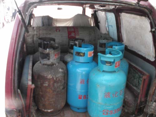燃管部门打黑遇到新情况,一些非法经营者利用小面包车成为流动黑瓶库,南京燃管部门积极应对,加大了打击力度。根据群众举报,3月27日上午,南京市燃气管理处会同市公安部门在秦淮区安品街等地区开展了一次联合执法行动,共取缔黑气点4处,依法先行保存液化气钢瓶60只。其中在鸣羊街查获1个黑气点的瓶库,当场收缴液化气钢瓶36只,在安品街49号,执法人员发现有2辆运送液化气的面包车停靠在马路边,车主不能提供任何液化气经营手续和危险品运输许可证,执法人员当场收缴了面包车(皖S1024)上的9只钢瓶,此时车主又纠集了一帮人与执法人员纠缠并抢夺收缴钢瓶,另1辆面包车趁乱加大油门冲过执法人员的阻拦逃离现场。