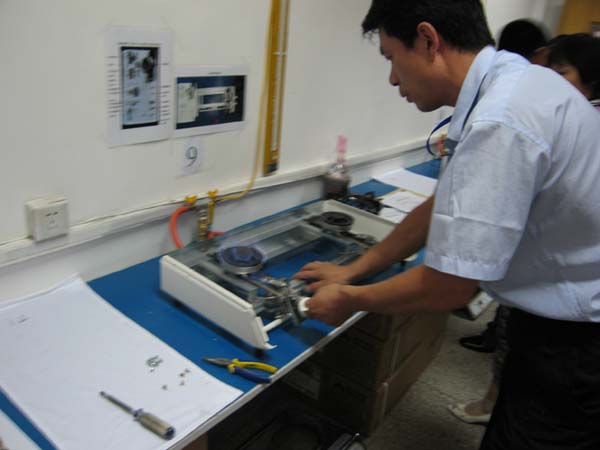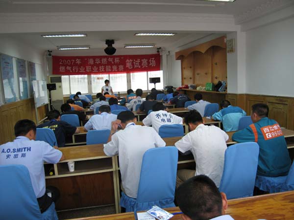此次技能大赛共有14家燃气器具安装维修单位的27名维修能手参加,上午10:00,在港华燃气培训中心举行了开幕仪式,市建委和市政公用局的领导分别做了重要讲话,省建设厅、市总工会、市劳动局等领导到会并观看和指导了比赛活动。