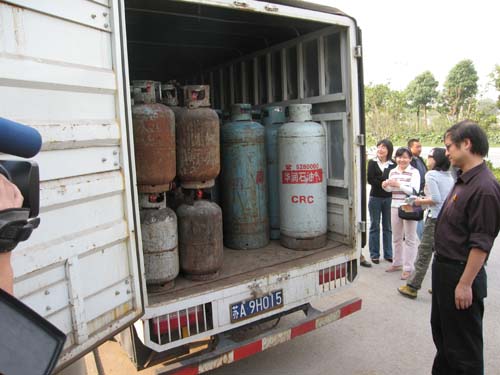 经过前期的细致摸底,执法人员在相关部门配合下,对江东门、上新河和管子桥地区进行了突击检查,查获几个隐藏较深的“黑气”经营户,在上新河地区还查获一辆封闭的厢式运输车,里面堆了20只