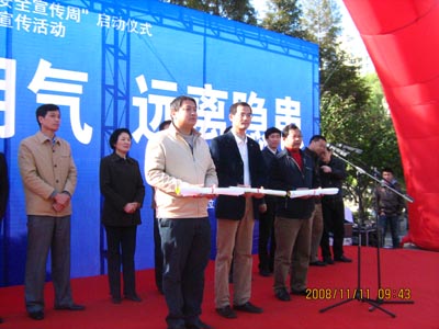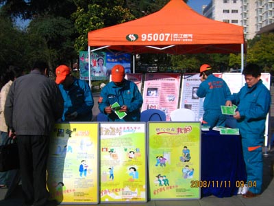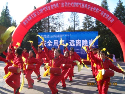 当天上午,郑和公园门口一派热闹景象,广场上设置了一块块燃气安全宣传展板和燃气安全宣传横幅。上午9:30,燃气安全宣传周启动仪式正式开始,在热热闹闹的公园门口,燃气管理处张兆福处长向领导和来宾致辞,主办单位向洪武路街道代表赠送了安全宣传电视片和燃气安全宣传招贴画,南京港华燃气公司端木家翔书记还代表全行业向全市燃气用户发出倡议要“安全用气,远离隐患”。最后,南京市市政公用局陈雷局长作出重要讲话,总结了我市燃气行业安全管理情况,分析了当前安全形势,并就燃气行业的进一步提高本质安全度和提升服务品质提出了新的要求。