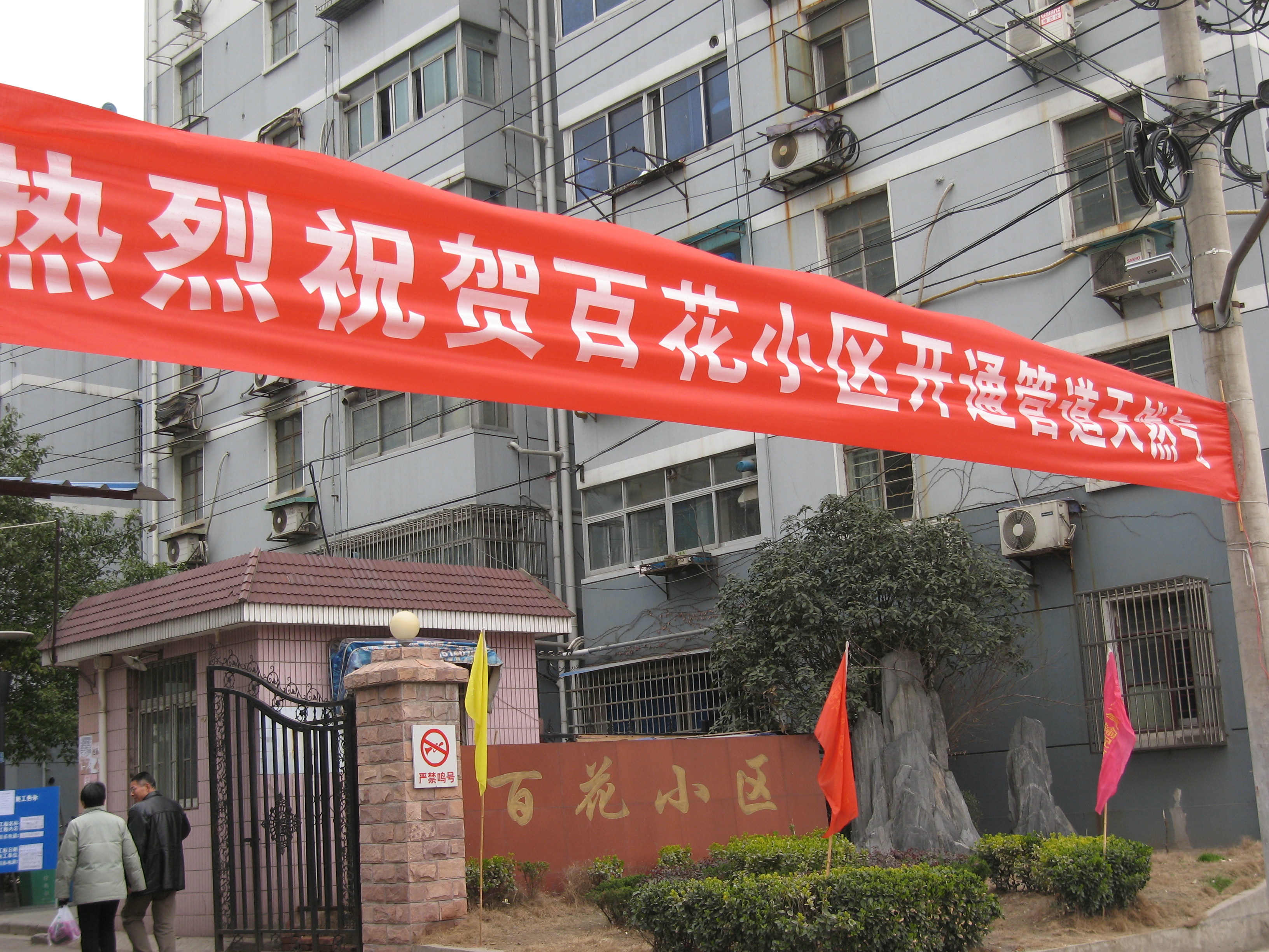 作为2009年市燃气管理部门提出的为民办十件实事之一,为50个老小区开通管道天然气,南京港华公司克服施工难度大、障碍多、时间紧等困难,在完成08年行业管理部门提出的主城40个老小区配套天然气,新增6万户管道燃气客户的基础上,配合我市小区出新,迅速对09年计划安装管道天然气的50个小区进行了实地管线勘察、管网设计并配合道路进行部分外管施工。09年春节刚过,南京港华就立刻组织人力物力对具备条件的小区进行立管施工及挂表收费工作,目前以百花小区为代表的部分小区已经具备了开通天然气的条件。南京港华承诺今年除了确保这50个小区及时用上天然气以外,还将尽可能多地发展具备条件的老小区,让更多的居民早日用上安全、经济、方便、环保的天然气。