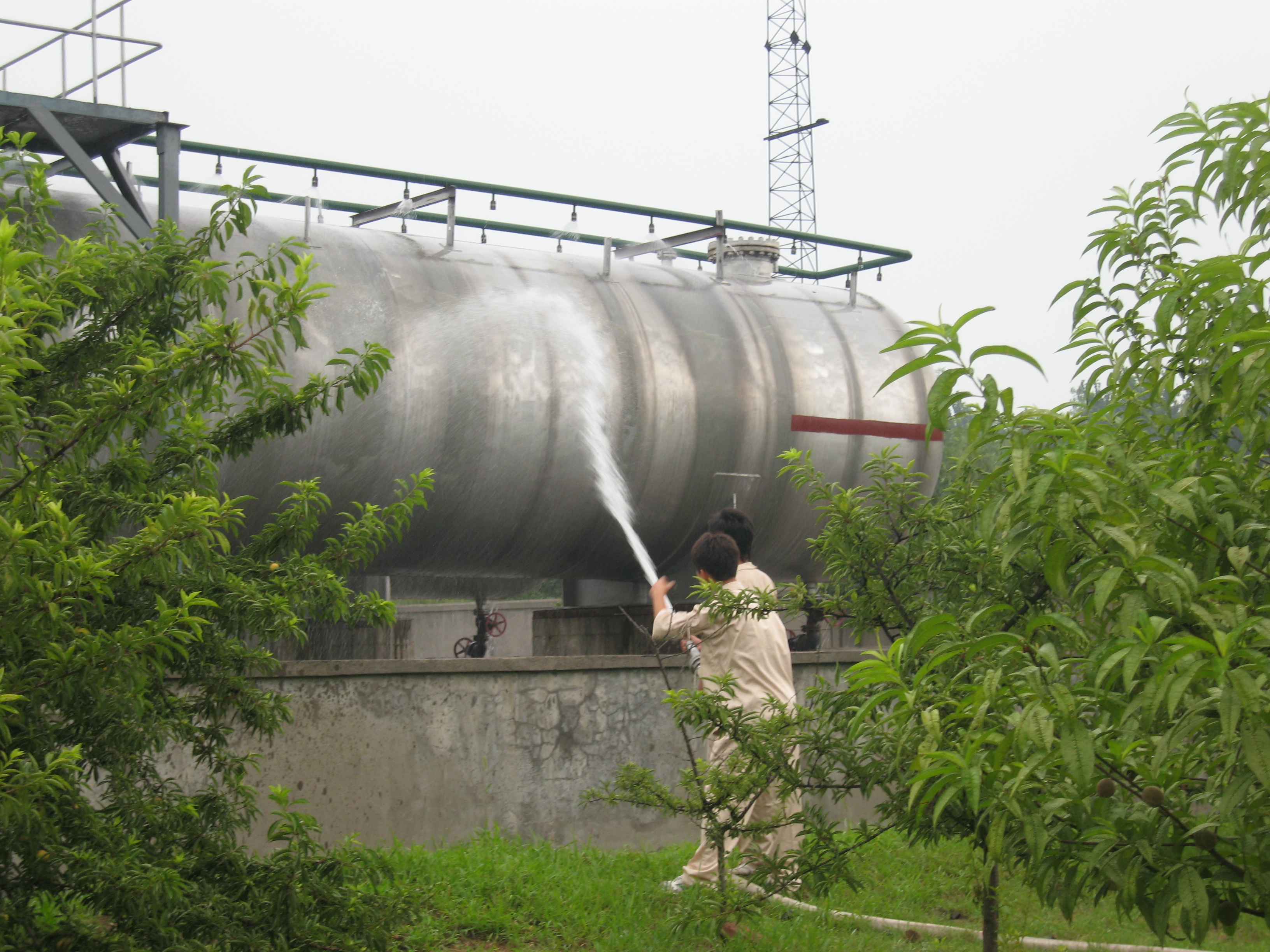 为进一步贯彻落实国家、省、市关于开展“安全生产月”活动的文件,推进全市燃气行业安全平稳运行,南京市燃气管理处继开展燃气设施夏季安全检查、入户安检、加气站事故应急演练等活动后,于2009年6月26日上午在南京液化气经营公司开展了液化气储罐根部阀门泄漏的应急处置演练活动,市区液化气企业及部分区燃管办负责人到场观摩。