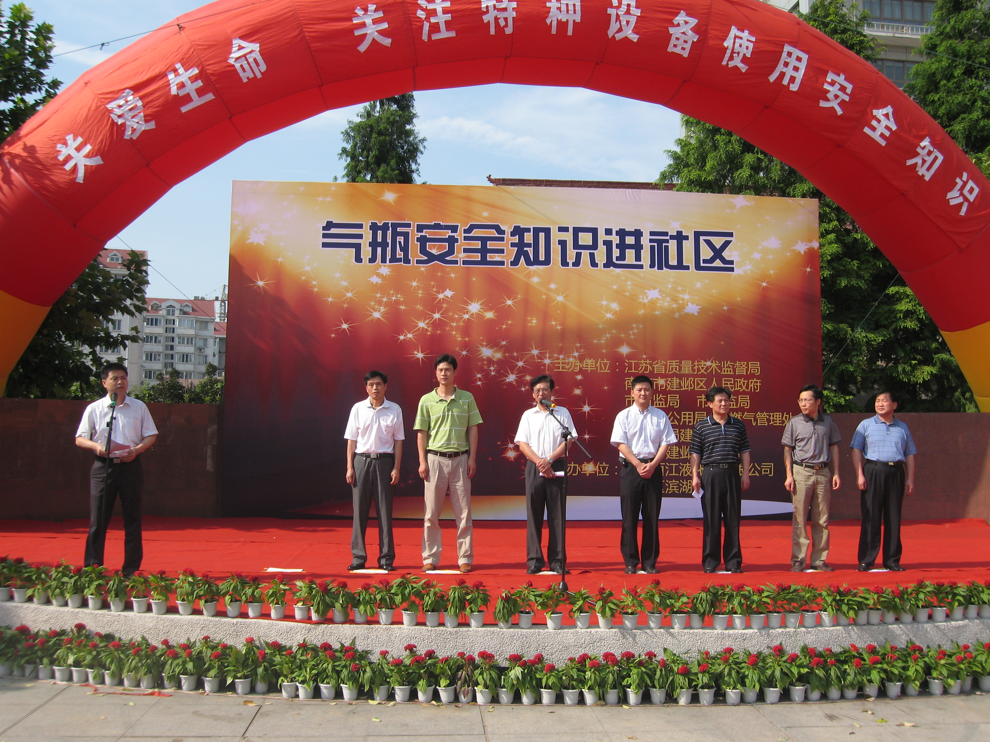 由江苏省和南京市质监局主办的“气瓶安全使用知识进社区”活动,7月21日上午在南京市建邺区滨湖街道兆园社区举行。南京市市政公用局周建丰副调研员、市燃气管理处张兆福处长参加了活动。
