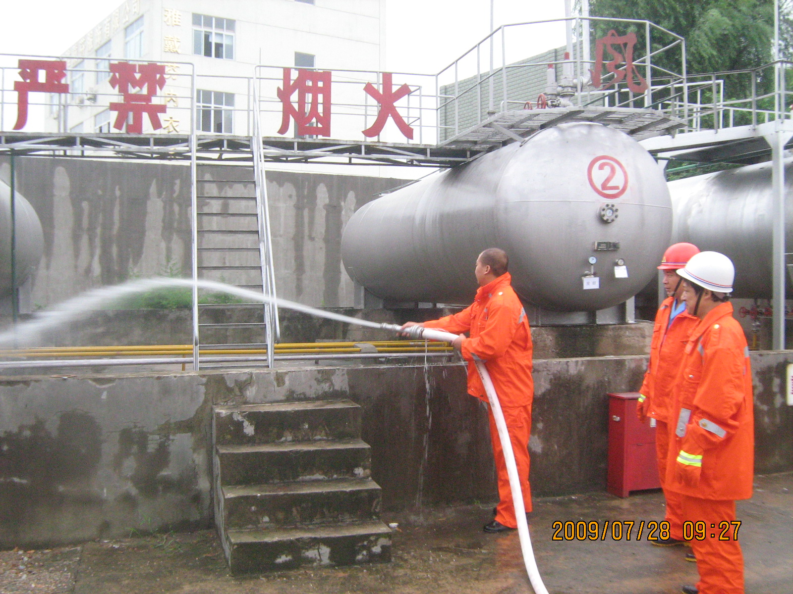 为进一步提高燃气企业应急抢险能力,南京市燃气管理处在行业内推行每月一家开展事故应急演练等的活动。继今年6月和7月在华润公司杨庄加气站和经营公司储灌厂开展应急演练之后,于7月28日上午在南京赛特燃气有限公司开展了液化气储罐根部阀门泄漏的应急处置演练活动,市区液化气企业及浦口区部分液化气企业相关负责人到场观摩。