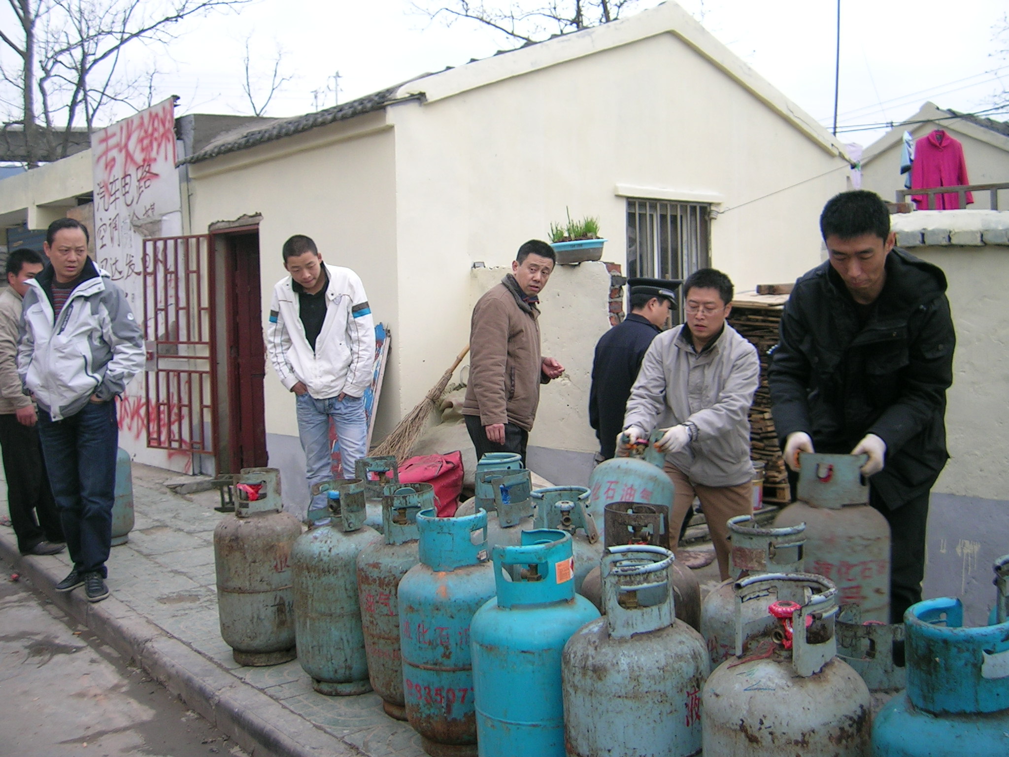 当天查处的几个非法经营燃气的窝点,都是隐藏在城乡结合部,如果不是当地居民,外人很难发现。“黑气点”周围都是低矮的平房,居民比较稠集,一旦发生事故,后果不堪设想。由于“黑气点”使用的钢瓶大部分都是超期甚至报废的钢瓶,且非法经营者为了多赚取高额利润,缺斤少两,往往在窝点直接用两个钢瓶互相倒气,极容易发生泄漏并引起爆燃。前不久在我市后宰门地区,发生的一起火灾事故,就是因为“黑气点”非法倒气时发生液化气泄漏,引发大火,烧毁了5间房屋,损失数十万元。