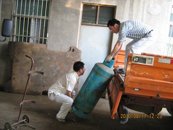 8月17日上午,根据群众举报,南京市燃气管理部门执法人员会同有关媒体,对位于栖霞区金马路立交桥附近所谓的“液化气罐装厂”进行了执法检查。经查,该处不是液化气罐装厂,而是具有合法经营资质企业——南京燃博燃气有限公司涉嫌非法设立停靠罐车和暂存钢瓶的中转站。现场共发现有报废槽罐车一辆(车牌号为皖C06286)、送气车一辆(车牌号为苏AXT223),库存液化气钢瓶24只。执法人员当场责令该公司立即停止使用该中转站,不得停放罐车和送气车,不得存放液化气钢瓶,并对涉嫌违法的钢瓶依法先行保存。