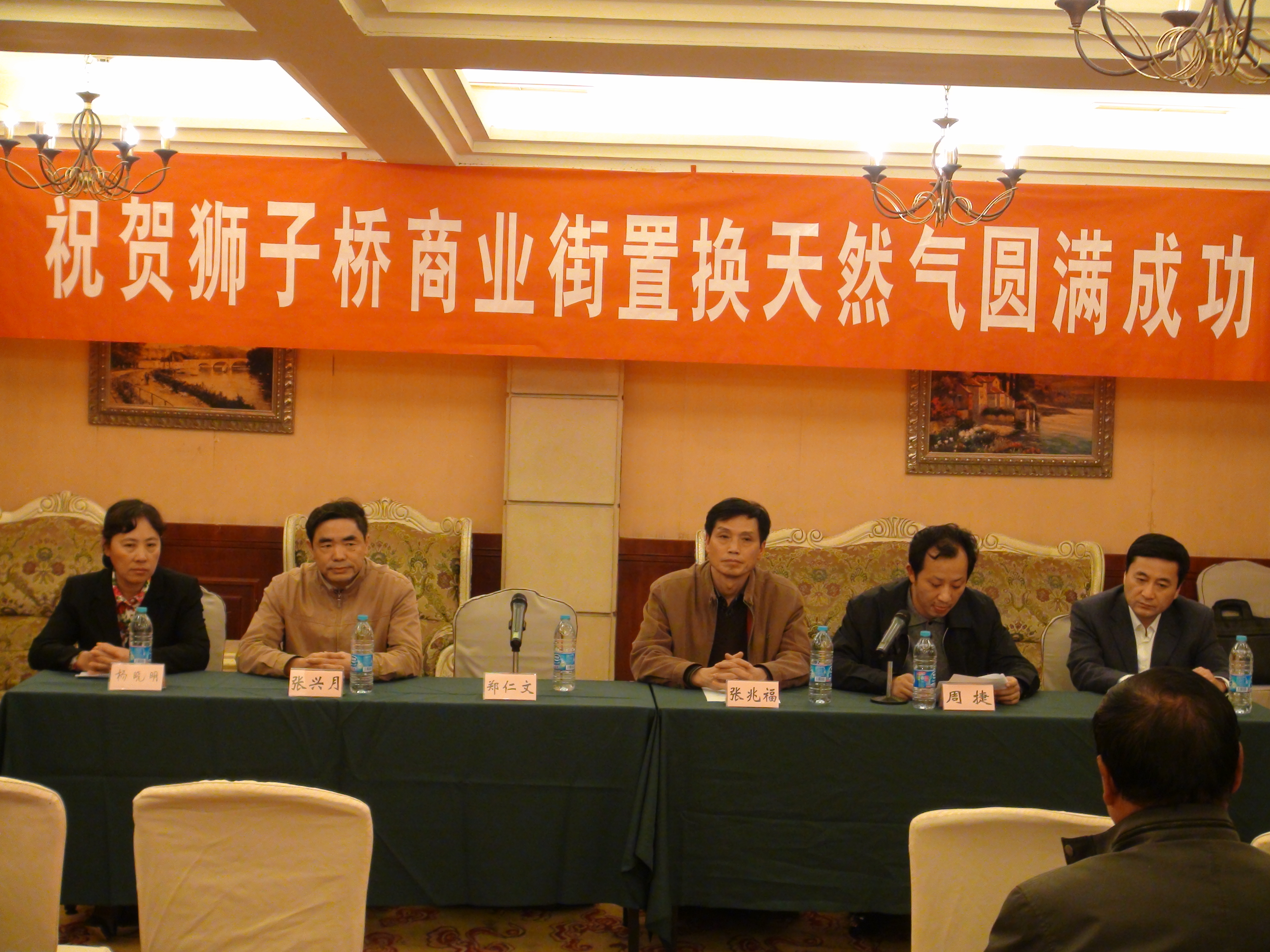 在点火仪式后召开的通气会上,周捷局长介绍了狮子桥美食一条街燃气安全隐患整改情况;湖南路管委会张兴月副主任畅谈了转换后对湖南路安全生产整体提档升级作用;微风电机厂沈劲副总理谈整改后收益情况;南京港华公司杨晓明做了表态发言。市燃管处张兆福处长主持了会议并讲话,他在讲话中指出,狮子桥餐饮美食一条街燃气隐患整改于2010年5月初进入了实质性的施工改造阶段,9月底户外主管道安装调试全面结束,各商家室内的接气工作陆续开展,目前涉及近30家餐饮企业、投资约200万元的狮子桥美食街燃气安全重大隐患整改工作基本结束。下一步市燃气管理部门还将联合各区安监部门进一步排查餐饮业集中区域燃气安全隐患情况,着力推进天然气置换工作。