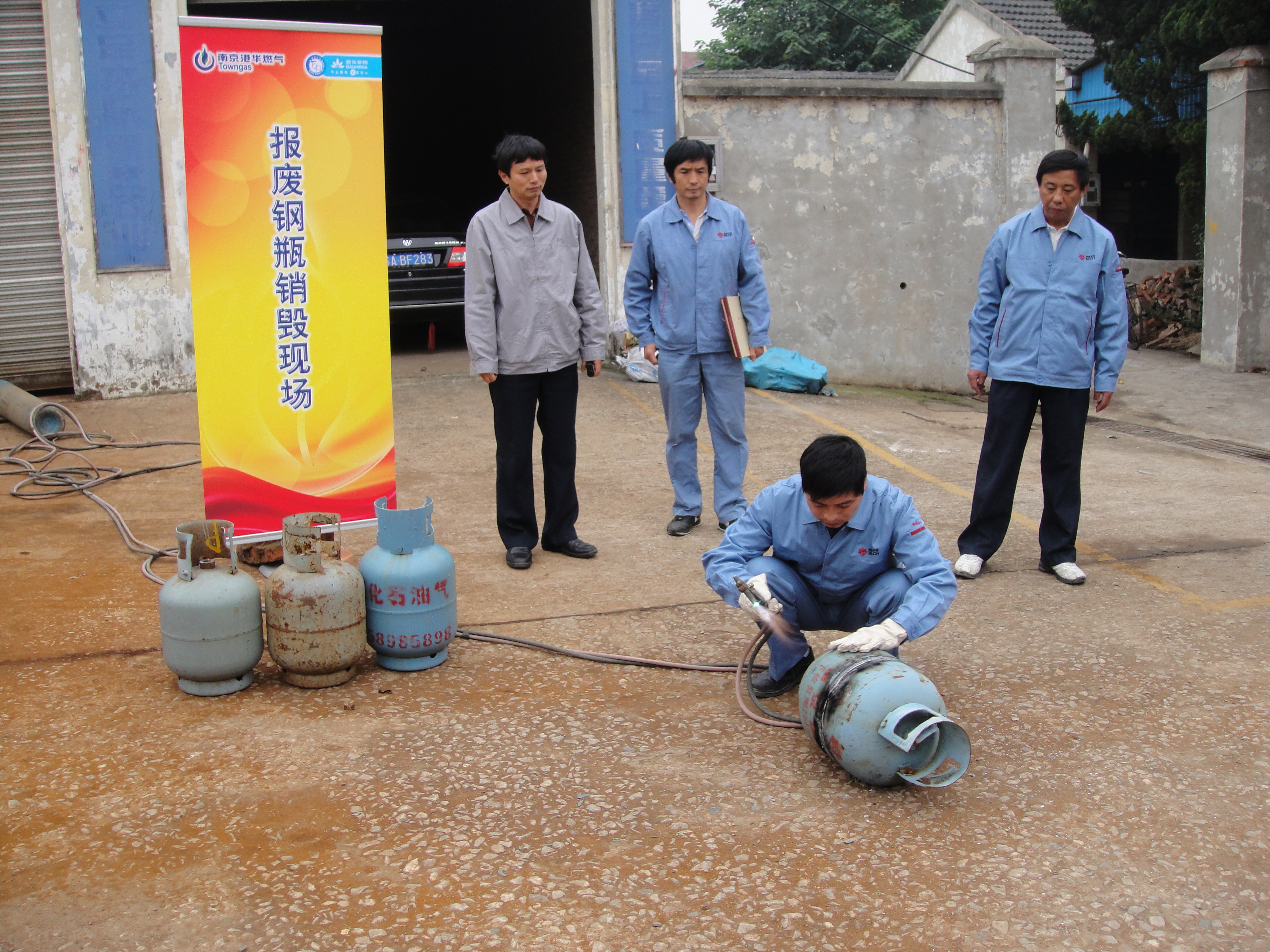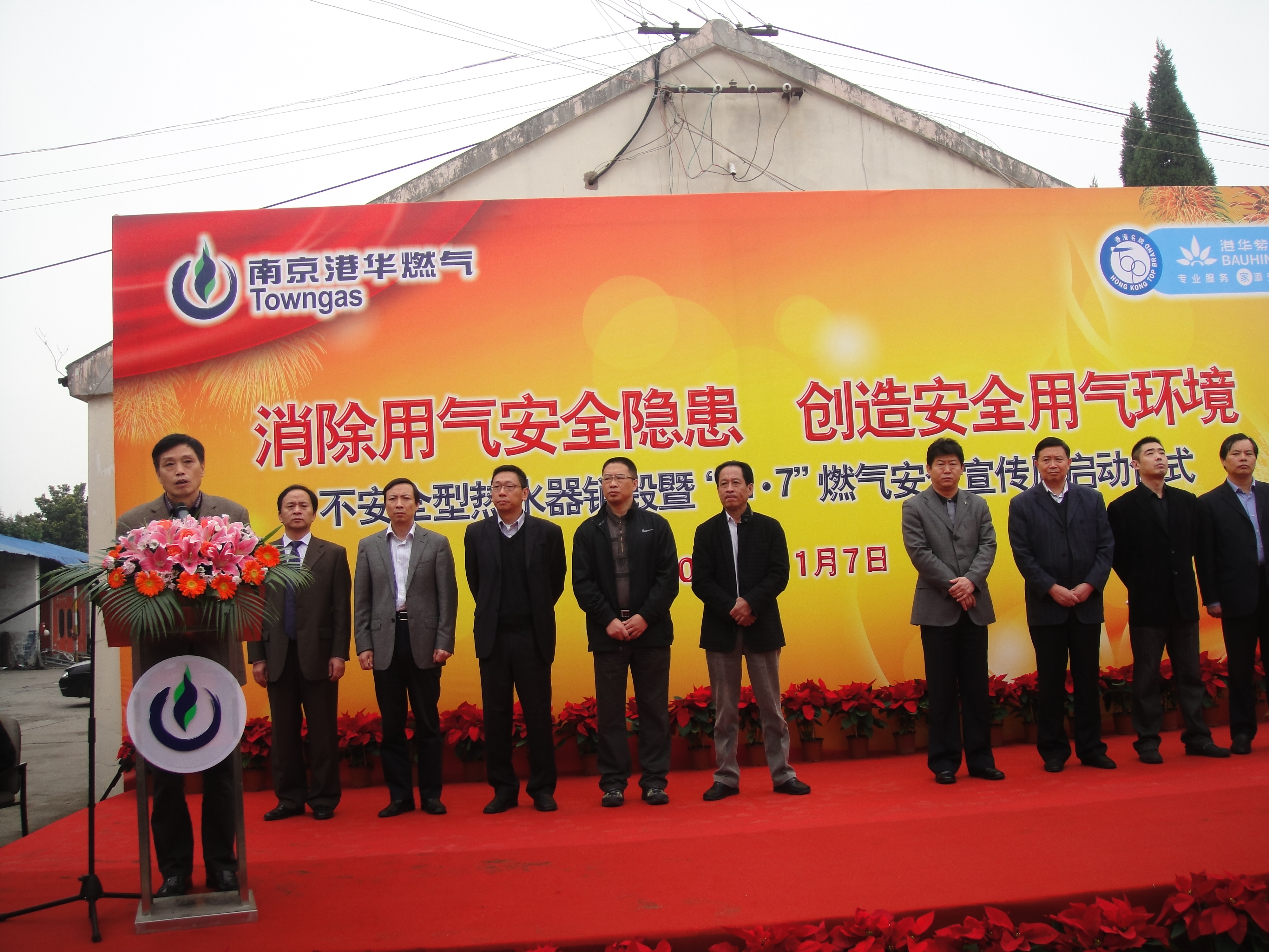 南京城市管理广播电台现场同步进行直播,主持人宣读《致广大燃气用户的一封信》,与群众互动有奖竞答,南京港华介绍安全用气常识并现场销毁直排式热水器,南京南炼现场销毁报废钢瓶,整个活动现场气氛相当热烈。