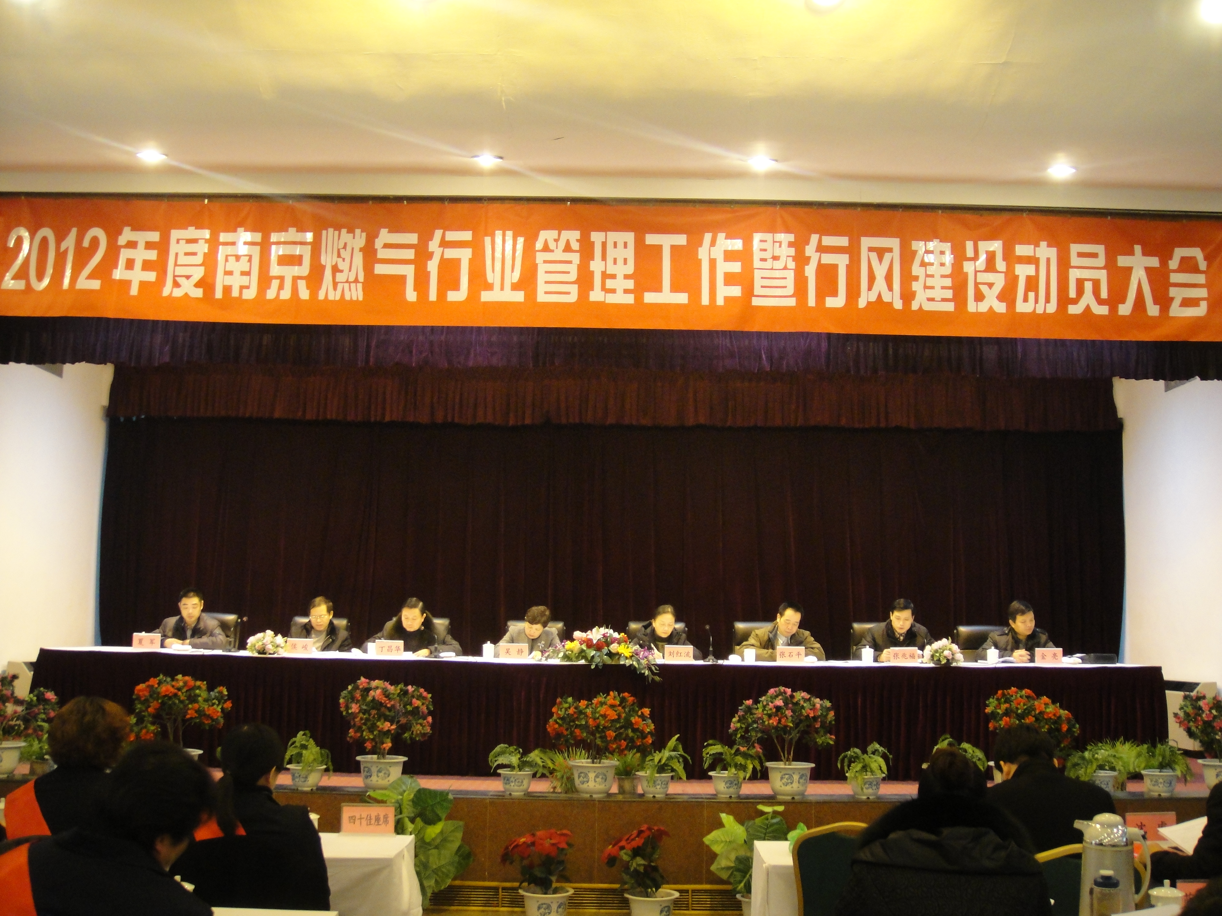 2012年2月21日,南京市燃气管理处召开2012年度南京燃气行业管理工作暨行风建设动员大会,市文明办吴静副主任、市委宣传部活动处张石平处长、市住建委刘红流副巡视员、宣教处丁昌华处长、金亮副调研员、公用事业处侯峻处长、市燃管处张兆福处长、夏军副处长以及三区两县燃管办和行业企业主要负责人出席了会议。燃气管理处张兆福处长作了题为“转作风促提升服务 抓落实促加快发展 为全面实现年度目标而努力奋斗”的讲话,总结了2011年的各项工作成绩,分析了存在的问题和不足。提出了2012年南京市燃气行业管理的五项目标任务:继续加大力度推进燃气设施建设、安全长效管理责任制落实、优化服务工作、许可管理工作和执法工作。并分三个方面提出了今年的工作要求,一是以对社会和用户高度负责的精神,抓好各项工作的落实;二是深刻认识市民高品质的社会需求,认真贯彻落实市委市政府和住建委作风建设大会精神,切实转变行风,改进服务,提高效率;三是适应城市转型升级,着力提升行业安全管理水平。