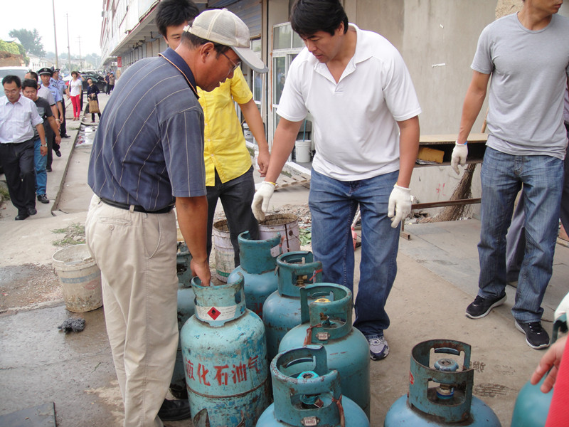 从今年8月份开始,市燃管处就组织红花街道及派出所展开拉网式普查,摸清共有黑气点8处,工作人员对这些黑气点逐一上门,对黑气经营者和房东进行告知和劝诫,同时发放告知书、限期整改通知书,要求房主不得将房屋出租给黑气经营者,否则将依照相关法规予以严惩。终于其中6处黑气点已放弃经营,但仍有2家在顶风作案,此次执法对这2家进行了清剿,给了违法者沉重的一击。
