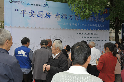 为推进我市“港华福气365”服务品牌的创建工作,2013年6月2日上午,南京港华客户服务中心联合秦淮区太平苑社区,在双塘街道太平苑小区开展了“平安厨房幸福万家”燃气安全社区宣传活动。
