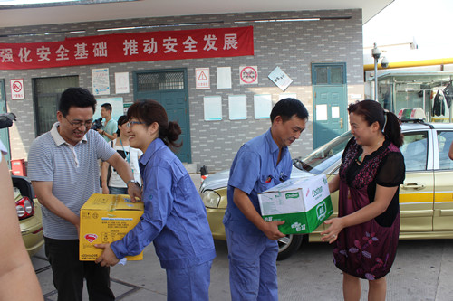 针对这些问题,我处及时帮助企业协调亚青组委和交管部门办理保供车辆通行证等,以保障燃气不间断供应。8月14日,我处对港华聚宝山、华润双龙街等加气站一线工作人员进行慰问,并赠送凉饮品。在慰问的同时,我处对现阶段工作提出了具体的安全管理要求:一是在高温下,要做好操作人员的安全保护工作,防止人员中暑等问题发生;二要加大对设备巡查、保养的频次,确保设备高效、安全运行;三要做好排队加气车辆的引导工作,确保供应稳定、有序。