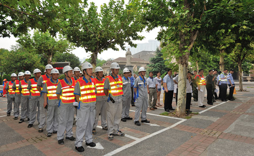 参加本次演练的有:建邺区人民政府办公室、区委宣传部、区公安分局、区消防大队、交警四大队、区财政局、区安监局、区卫生局、区环保局等13个单位、80余人、17余台车辆。南京港华公司调配带直播功能的指挥车、液化天然气移动撬车、先进的查漏车参演。