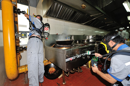 本次演练情景设计为2014年7月18日10:00位于奥体中心附近某饭店发生燃气爆燃。接报后公安、医疗、消防、交管及港华应急抢修队伍紧急赶赴现场,发现仍有燃气泄漏,采取了疏散人员、抢救伤员、应急供应、控制事态等措施。由于切断气源,导致青奥游泳馆气源中断,港华燃气运用LNG移动车辆对燃气管线应急供气,确保青奥游泳场馆正常运行,待险情排除后,恢复正常供气。