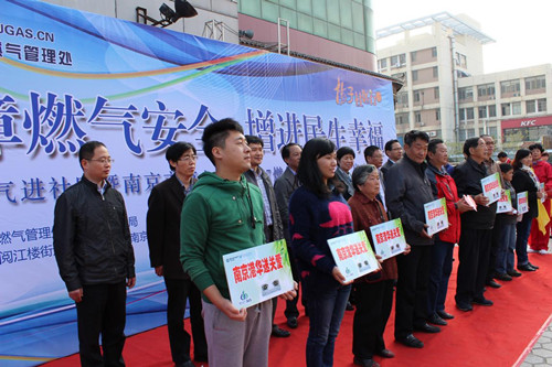 2014年11月7日上午,市燃气管理处联合鼓楼区安监局、扬子晚报、南京港华燃气有限公司等多家单位在鼓楼区阅江广场举办了“11.7燃气安全宣传周”活动启动仪式。出席仪式的人员有市住建委巡视员朱俊基、鼓楼区副区长梁春燕、市住建委公用处处长苗剑文、市住建委宣教处处长赵龙、鼓楼区安监局局长檀利、市燃气管理处处长陆燕飞、副处长王玉国、鼓楼区阅江楼街道办事处主任成静等。