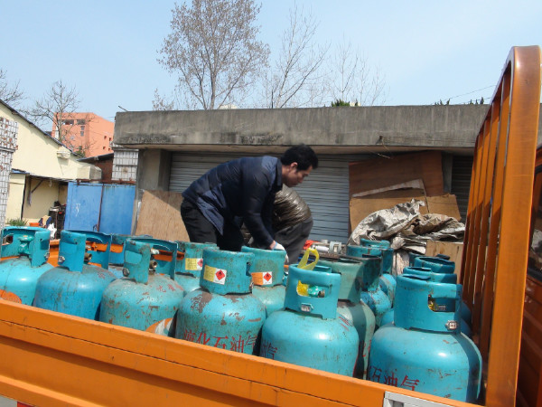 2015年3月24日,经过前期详细摸排,我处联合公安部门及南京百江液化气公司,对我市瓶装液化气市场无证经营活动进行了联合查处。此次联合执法行动,共查处鼓楼、栖霞等区5处无证经营“黑气”点(黑气车),先行保存液化气钢瓶30多只。