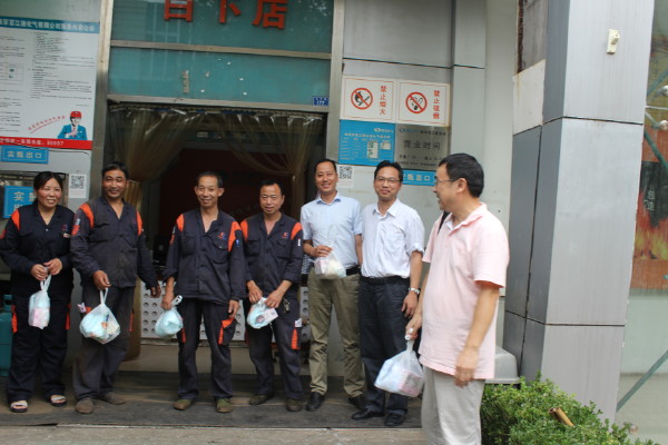 为了进一步扎实做好防暑降温和燃气安全工作,8月19日,市燃气管理处陆燕飞处长、夏军副处长、王玉国副处长带队对南京百江白下店供应站及南京港华合作村加气站的一线员工进行了慰问,在炎炎夏日为员工们送来一丝舒心的清凉。