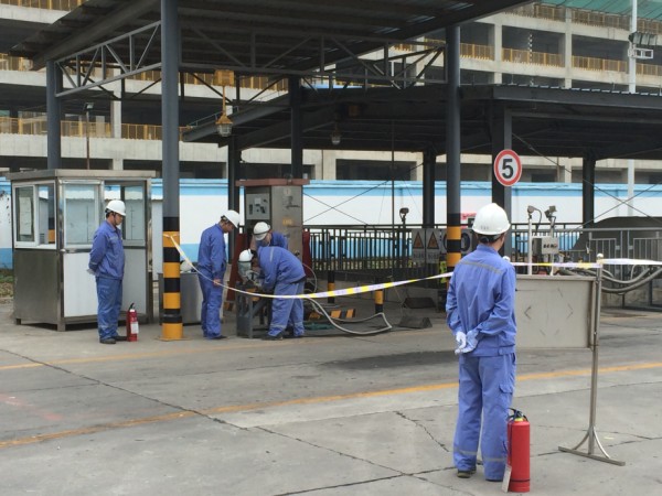 为增强企业职工安全意识,贯彻“安全第一,预防为主,综合治理”的安全管理原则,10月19日上午,燃管处联合南京华润燃气沙洲加气站按计划开展了“12+2”应急演练活动。演练模拟了正在加注的LNG加液枪出现漏液的事故。参演人员按照程序采取了切断供应,关闭电源,现场检测,警戒疏散等应急处置措施,及时控制了事故状态。演练结束后,指导小组总结了经验指出了需要进行改进的地方,整个演练取得了良好的训练效果。