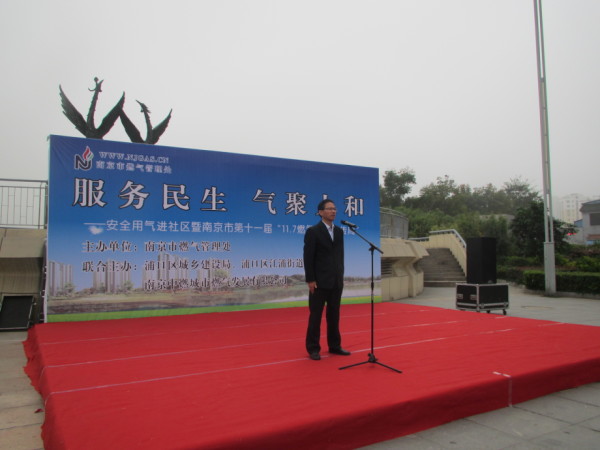 2016年11月7日上午,市燃气管理处联合浦口区建设局、浦口区江浦街道、南京中燃城市燃气发展有限公司等有关单位在浦口区凤凰台广场举办了第十一届“11.7燃气安全宣传周”活动启动仪式。出席仪式的人员有市建委宣教处处长赵龙、市燃气管理处处长陆燕飞、副处长夏军、李林、浦口区建设局局长郝晓鹏、书记采晓云、南京中燃公司总经理刘永涛、副总经理陈滨等。