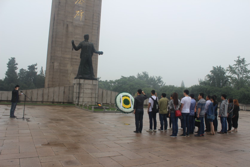 在雨花台烈士纪念馆前合影后,党员们心怀肃穆之情有序进馆参观,通过工作人员的讲解和浏览大量珍贵的历史照片、文献史料,全体党员对恽代英、邓中夏等雨花英烈的崇高理想信念、高尚道德情操和为民牺牲的大无畏奉献精神所震撼。随后,在巍峨的雨花台革命烈士纪念碑前,夏军副书记带领党员庄严宣誓,通过重温入党誓词,党员同志们时刻牢记共产党员应尽的责任与义务。两名党员代表怀着无比沉重的心情敬献花圈,全体党员向革命烈士肃立默哀,随后大家迈着沉重的步伐,缓步绕行纪念碑一周,缅怀先烈。