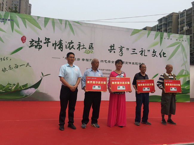 6月5日上午,南京港华携手南京市燃气管理处、建邺区南苑街道泰山路社区、建邺区消防大队南湖中队、小厨娘餐饮公司,开展以“端午情浓社区 共享三礼文化”为主题的大型广场活动。市燃气管理处副主任王晓华、建邺区南苑街道办事处副主任胡有璋、南京港华客户服务部高级经理周爱众等参加了本次活动。