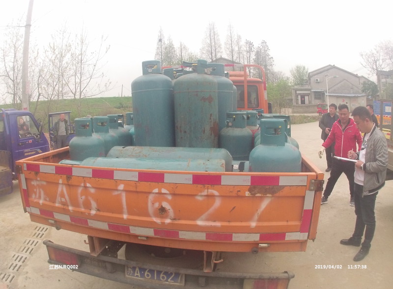 为了保障市民的生命财产安全,杜绝“黑气点”瓶装液化气进入百姓家。4月2日,根据举报线索,南京市建委燃服中心、江宁区燃管办组成联合执法队,对湖熟街道辖区内“黑气点”进行突击查处,2个“黑气点”的73个液化气钢瓶被暂扣。