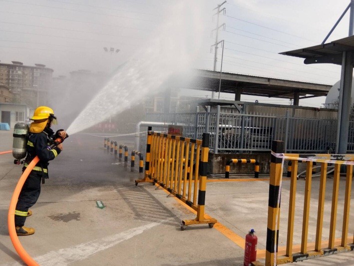 在演练过程中,站内人员和应急小组成员严格按照公司应急预案的处置方法,经过应急响应、报警、警戒疏散、消防救援、通讯联络、政企联动应急处置等环节,按时保质地完成了应急救援工作。