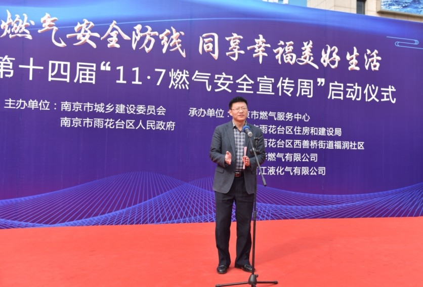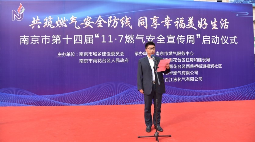 启动仪式上,市建委领导围绕全市燃气安全形势及餐饮场所“瓶改管”工作进行致辞发言,要求各区和相关部门通力合作共筑燃气安全防线新局面。南京港华公司领导向市民介绍港华公司在用户安全管理方面的工作与举措,号召市民进一步提高安全用气意识。雨花台区政府领导宣布第十四届“11·7燃气安全宣传周”启动仪式正式开始。
