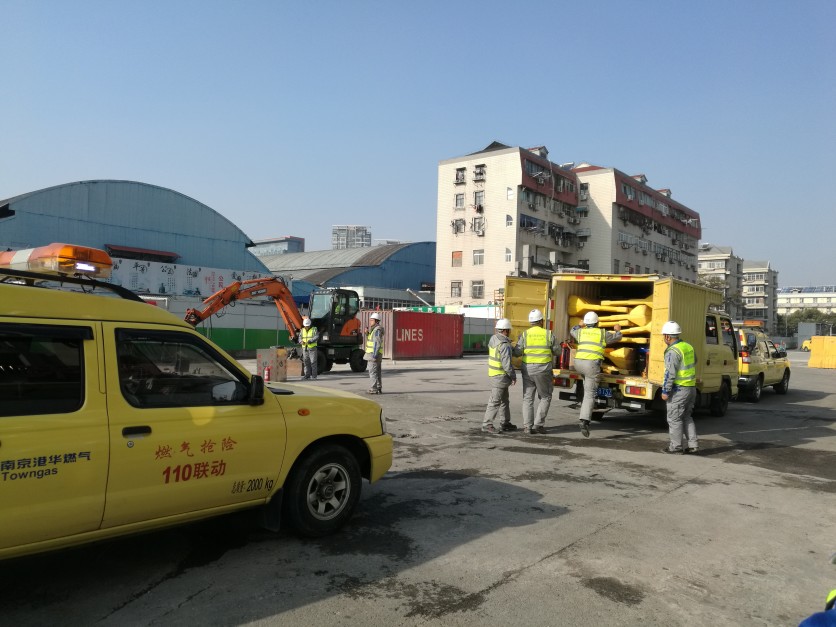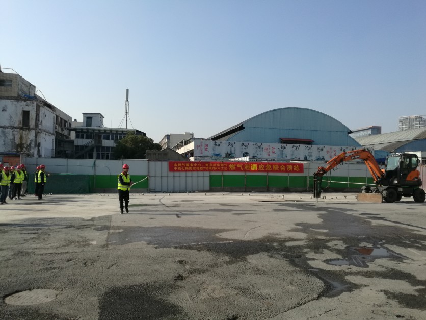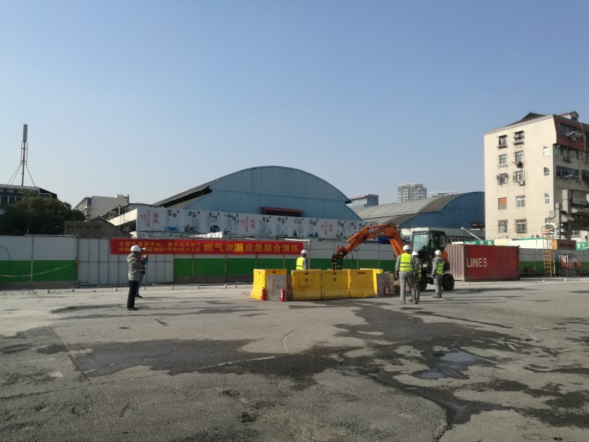 12月11日市燃服中心联合南京港华燃气有限公司和中铁七局集团有限公司,在中铁七局南京地铁7号线2标六工区举办2019年燃气泄漏应急联合演练。