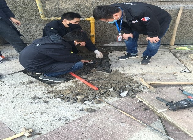 疫情不等人,燃气泄漏险情更不等人,在没有外抢险施工单位人员协助的情况下,运营组人员不畏艰难,在做好个人疫情安全防护的基础上,全员参与,合力将近40公分厚的凝土进行破除,找出燃气泄露点,成功的消除一起因地基下沉导致镀锌弯头开裂泄漏燃气的安全隐患。