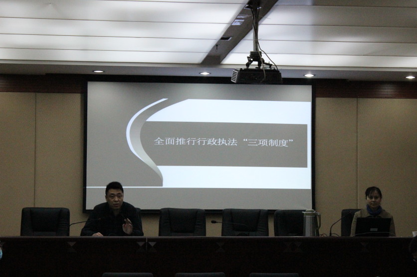 钱清处长紧密联系工作实际,主要围绕行政执法“三项制度”的提出背景、具体内容、工作要求等三个方面展开,精准的解读全面推行行政执法“三项制度”的重要性和必要性,指明了执法工作今后的方向,回答了执法工作中的实际问题,讲课内容深入浅出,分析透彻,内涵丰富,全体参训人员对行政执法“三项制度”有了更深刻的理解。