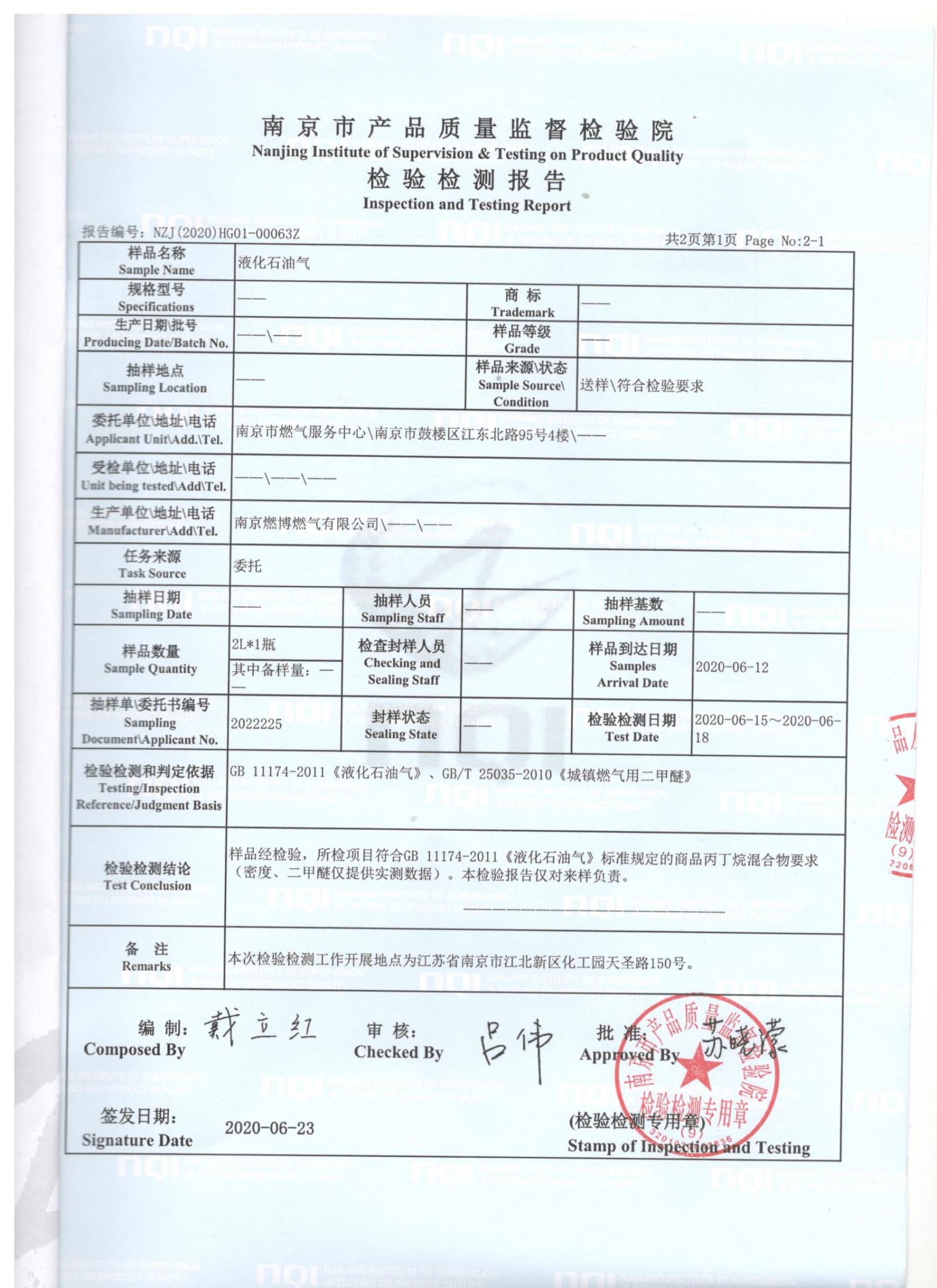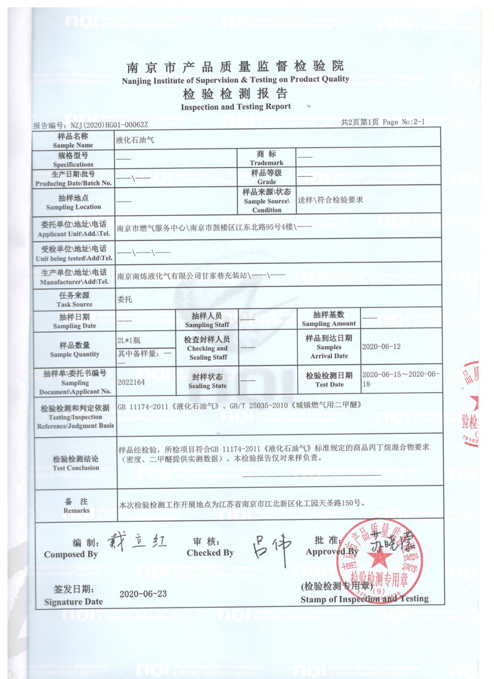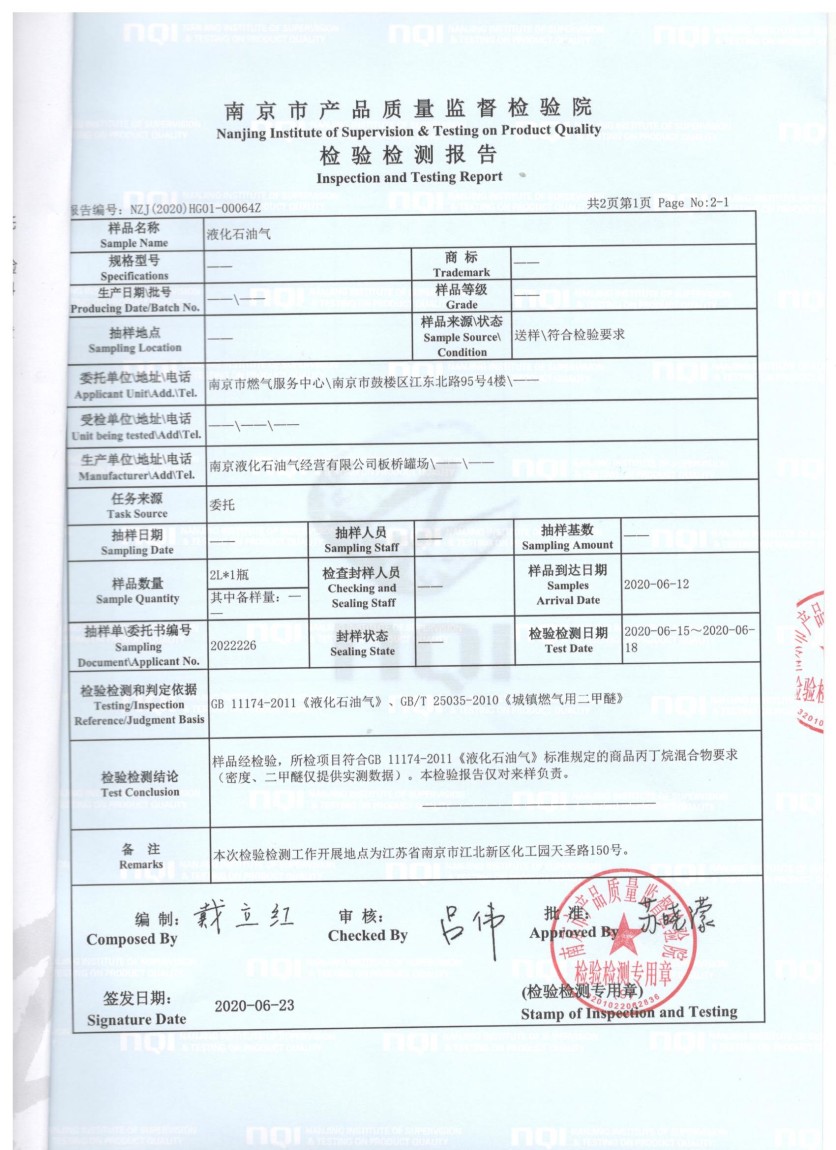 气质抽检报告