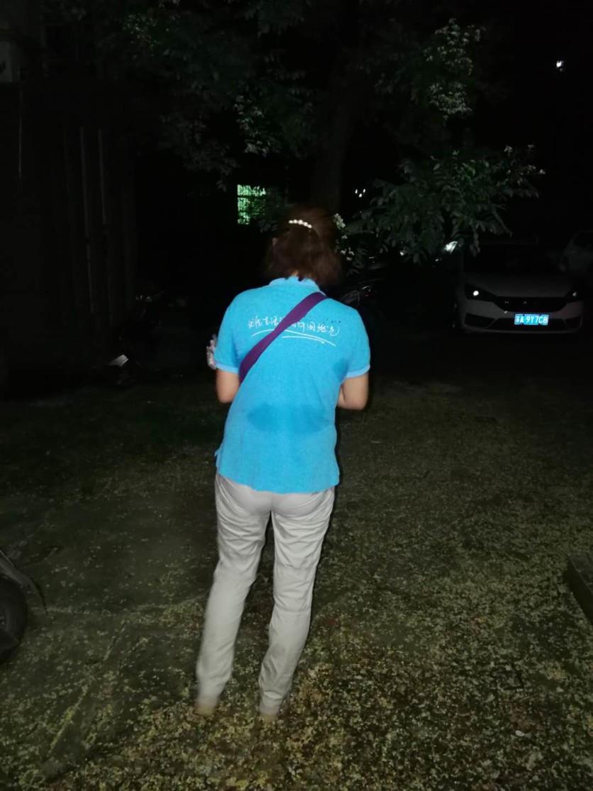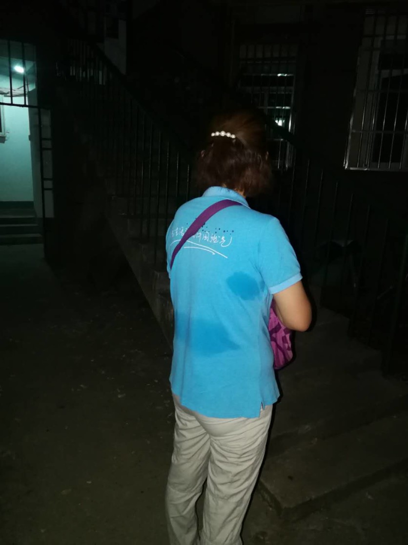 被汗水浸湿的衣服在漆黑的夜晚显得格外抢眼