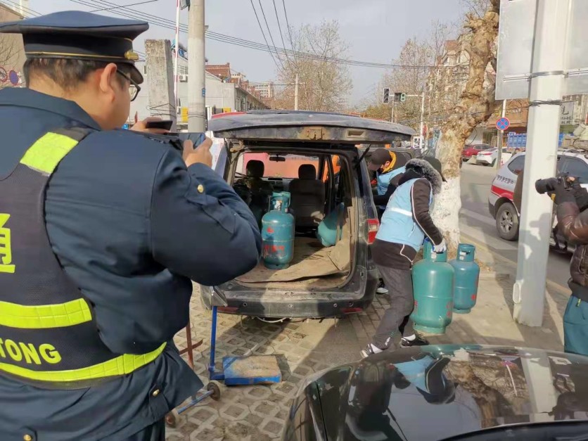 为保障元旦、春节期间城镇燃气安全生产,做好国家安全发展示范城市考评迎查工作,根据市建委相关指示要求, 2021年1月10日,南京市燃气服中心蓝精宁稽查执法队联合公安、交通及属地街道,先后在板桥、梅山等地开展联合整治“黑气点”“黑气车”专项行动。