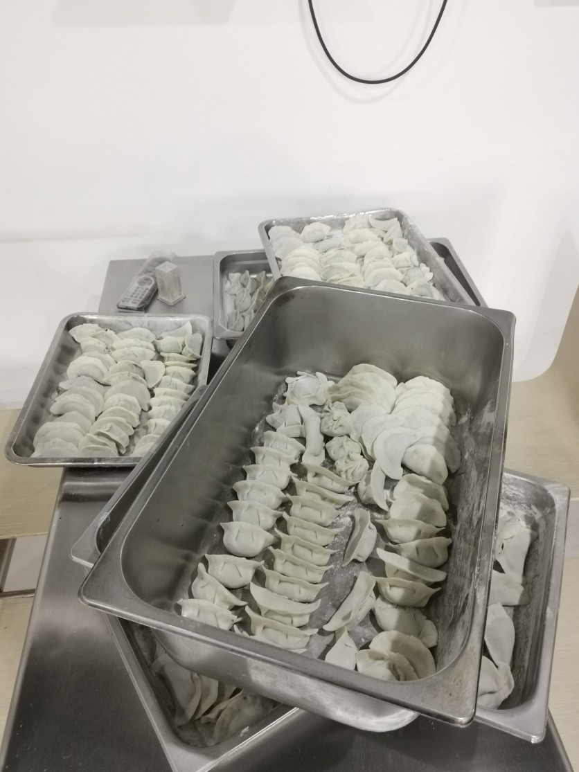大家按要求处理好个人卫生后,来到食堂,看着桌上已准备好的饺皮和馅料,心急的同志直接开始动手包饺子了。一些不会包饺子的同志则在旁边围观,帮忙递交皮、上馅料,先向身边的包饺子“小能手”学习了包法,随后便热热闹闹地动手包起来。有的同事别出心裁,做出了造型奇特别具特色的的饺子。中心领导也参与其中,和职工齐动手,大盆的肉馅和大叠的饺子皮,很快就变成了一盘盘美观饱满的饺子。