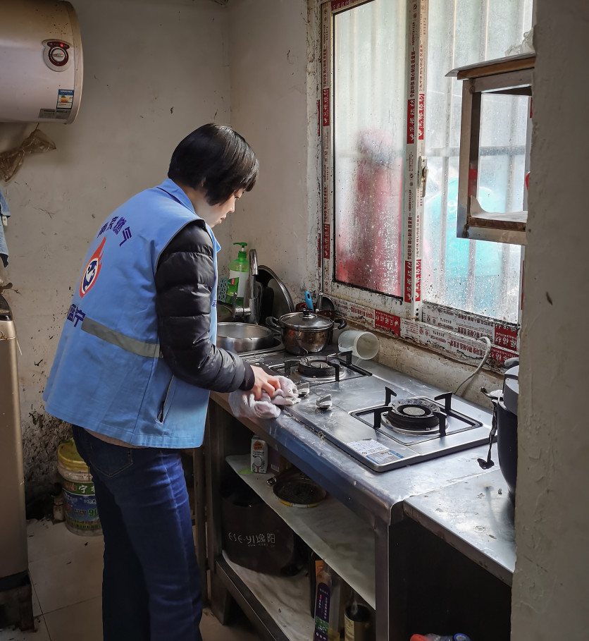南京百江公司“蓝精宁”服务队来到雨花台区君子兰花园111号润明老年公寓,现场为老人们答疑解惑,宣讲燃气安全使用知识,提供免费灶具维修、免费入户安检等便民服务,并给老人们带去了米油等生活用品。在石婆婆庵小区,服务队员吴云霞店长耐心亲切的为用户做安检,为老人讲解用气安全常识,李福平师傅则不惧油污,轻车熟路的为老人认真更换老化的皮管和修理灶具。在服务过程中,不时有老人对服务队员竖起大拇指。