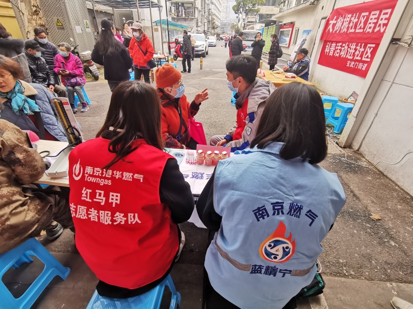 在第59个“学雷锋纪念日”来临之际,为弘扬雷锋精神,传播志愿理念,市燃服中心、南京港华和南京百江共同组织行业“蓝精宁”服务队,走进社区和老年公寓开展学雷锋送温暖活动,为居民提供燃气安全宣传和服务,帮助困难群众消除隐患,提高安全用气意识。