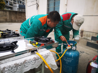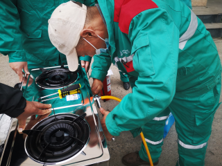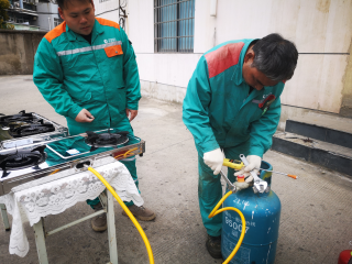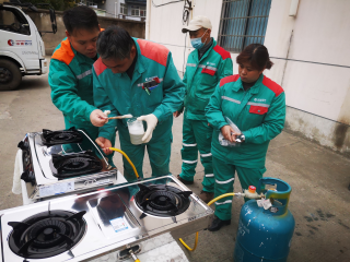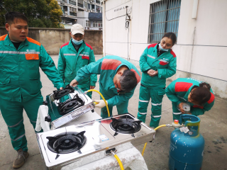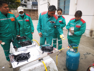 从如何判断灶具的使用年限、熄火保护是否正常,到螺口、直插口如何连接皮管,从自动切断调压器如何安装到如何判断是否漏气,从用肥皂水试漏再到用便携式测漏仪加强进行双重试漏,培训人员均手把手地详细讲解,认真教学,并现场让一线人员进行实操演练。