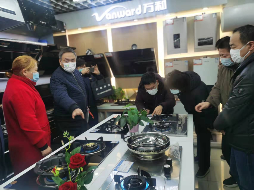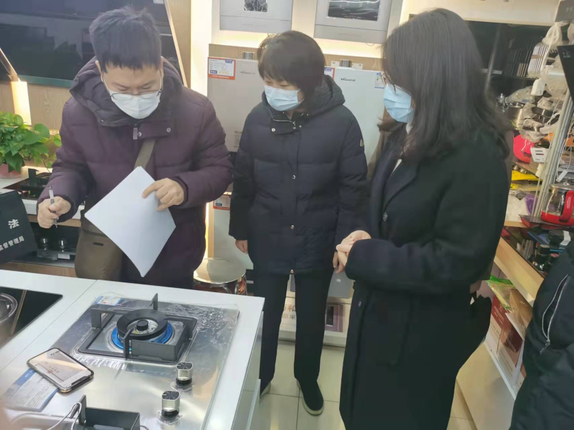 本次共抽查3家商户,涉及万和、万家乐、金龙等多个知名品牌,检查人员首先检查商户是否销售直排式热水器、无熄火保护装置的灶具等国家法规明令禁止的燃气器具,随后对营业执照、所销售产品的检测报告、3C证书等材料进行核对,最后对商户缺少进货台账等问题进行督促整改。