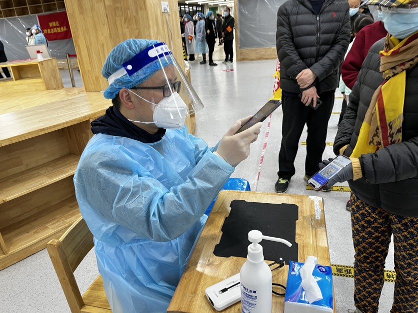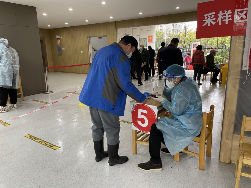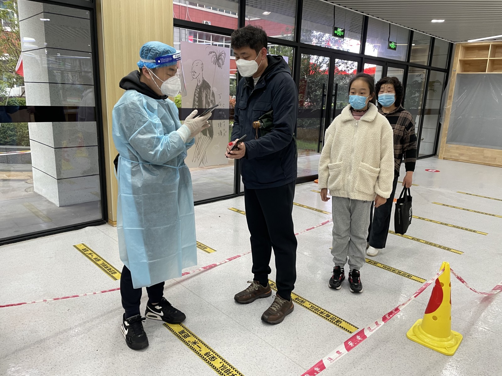 在抗疫志愿服务活动过程中,全体志愿者身着“蓝精宁”马甲不畏风雨,以饱满的情绪积极地投入到防疫工作中,在他们的指引下,江东街道居民们在采样过程中不扎堆、不聚集,不交流,保持安全距离,错时有序进入检测区,依次扫码登记,检验完成,有序离场,整个过程快速、准确、规范。